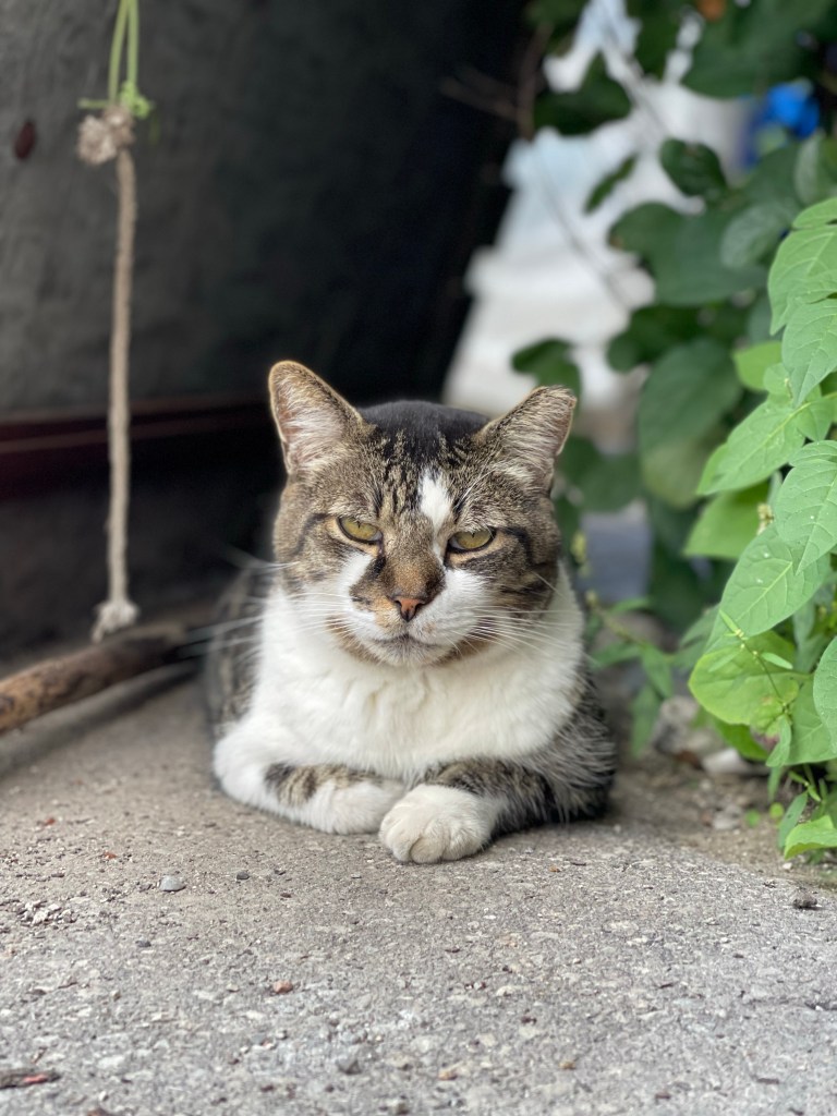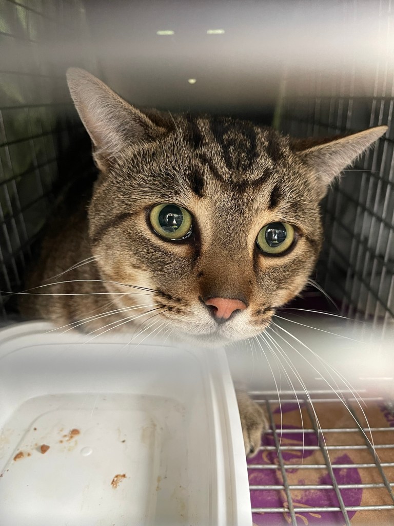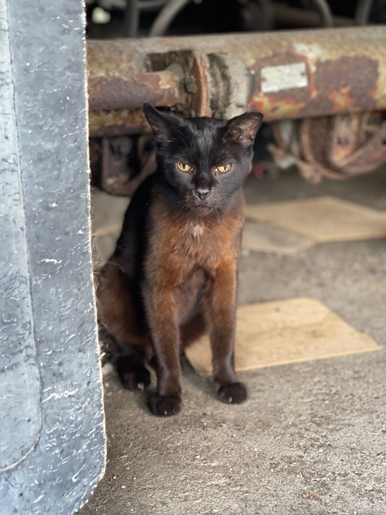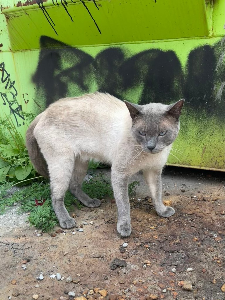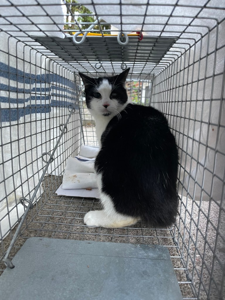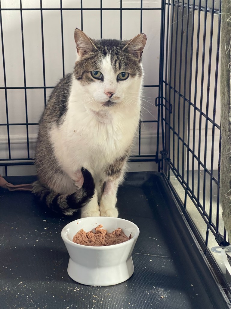 Tyler started coming around in 2020. Skinny, hungry, intact, and covered in scrapes and cuts. The other cats (Susie, Lenny & Baboo) didn’t want him around and made it clear, but Tyler was hungry and would wait a little distance away for the girls to finish eating before approaching timidly for the scraps. We started placing separate food for him and shared his photo in lost cat and local groups on social media but no one claimed him, but he was recognized by some who would leave food out for him. We managed to finally contain him in January 2021.