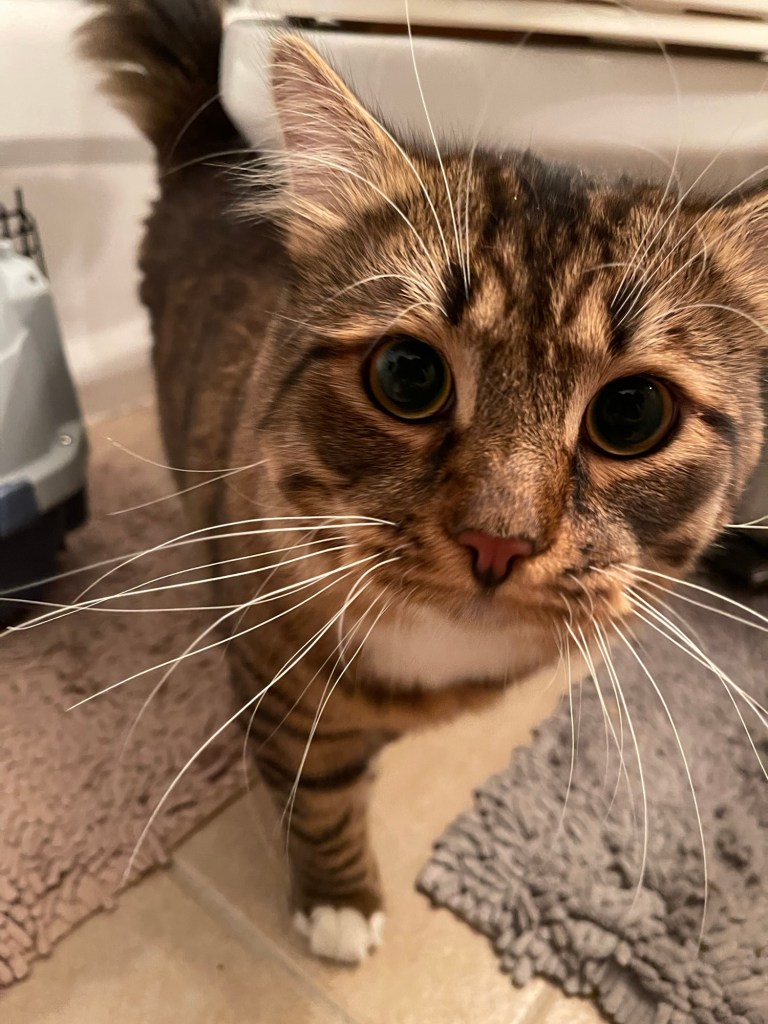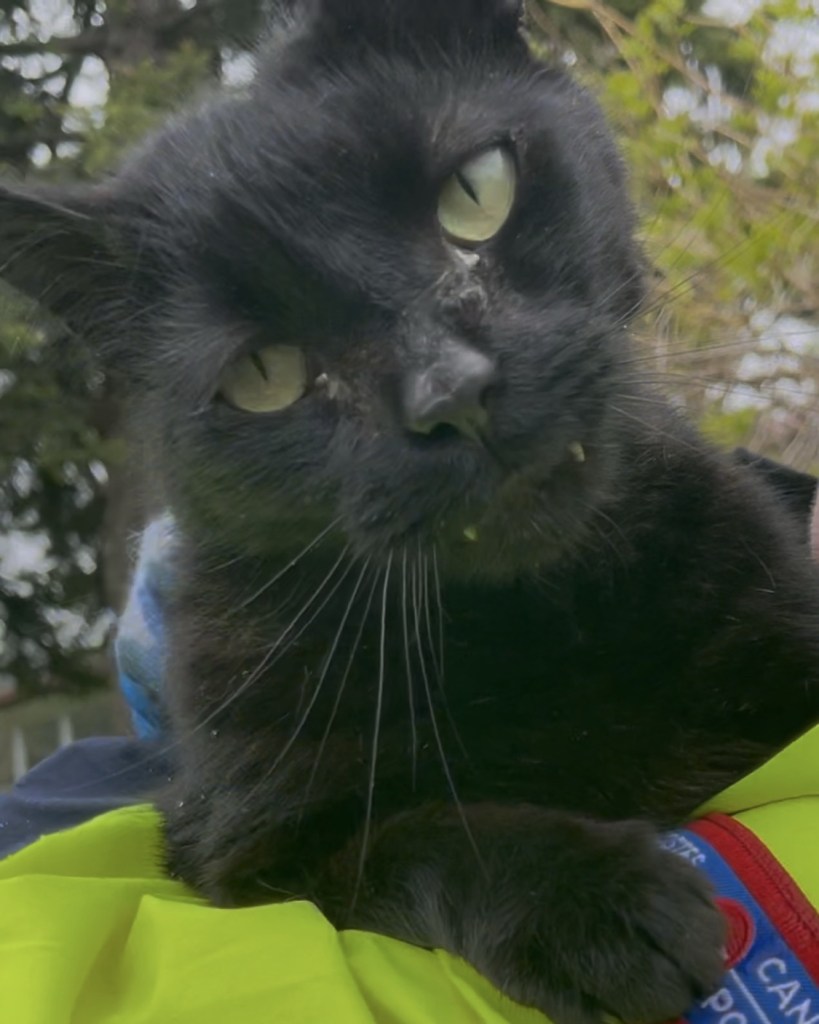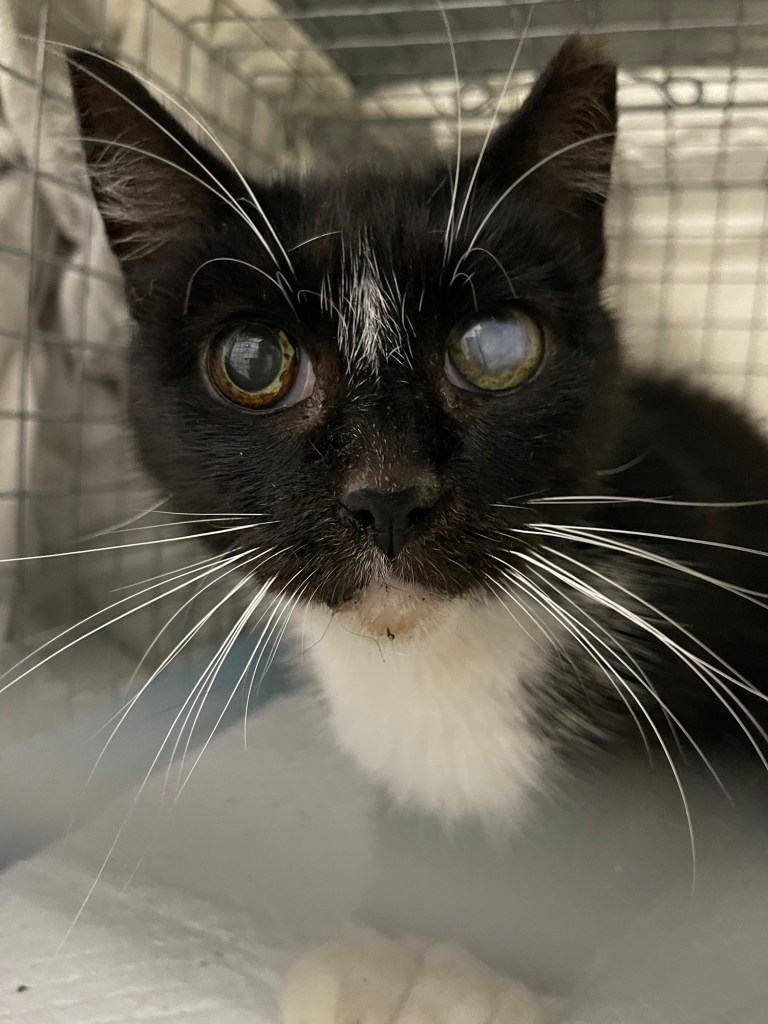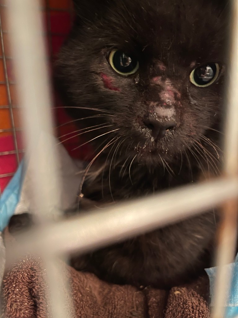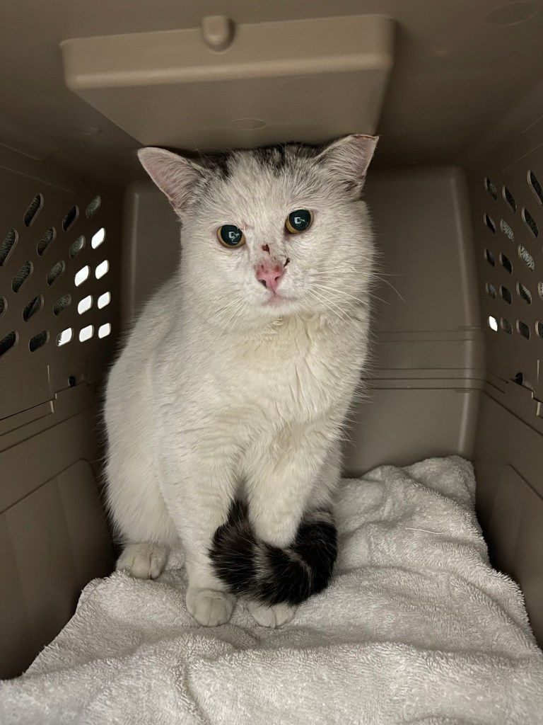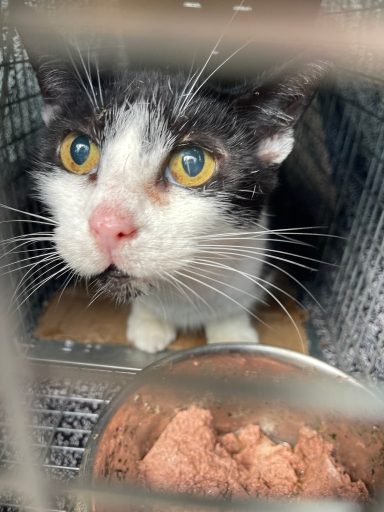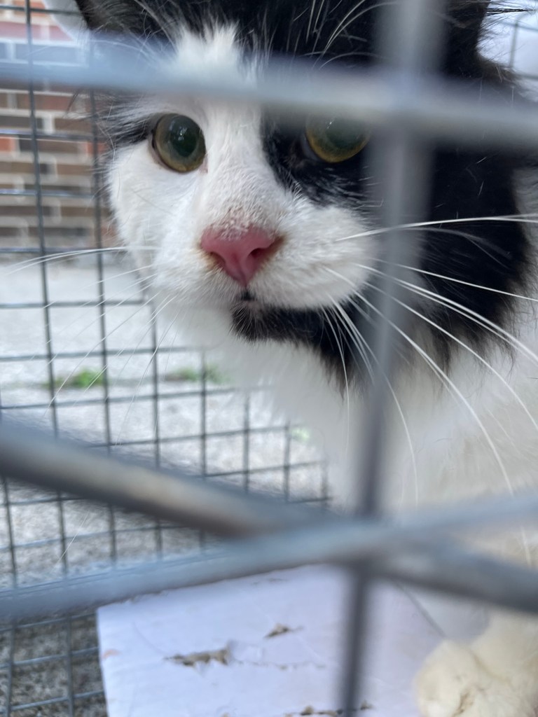 Nutella was first noticed by our neighbours outside of our building looking cold and unwell in January 2021. They called the city who came to investigate but didn’t feel the cat was injured and assumed he was a feral cat and left him after scaring him with a net. Unsatisfied with the result, our neighbours then contacted us for help. After several hours of trying we were able to contain with him. We also connected with the city animal services and the matter was dealt with, (and their services have been appreciated ever since).